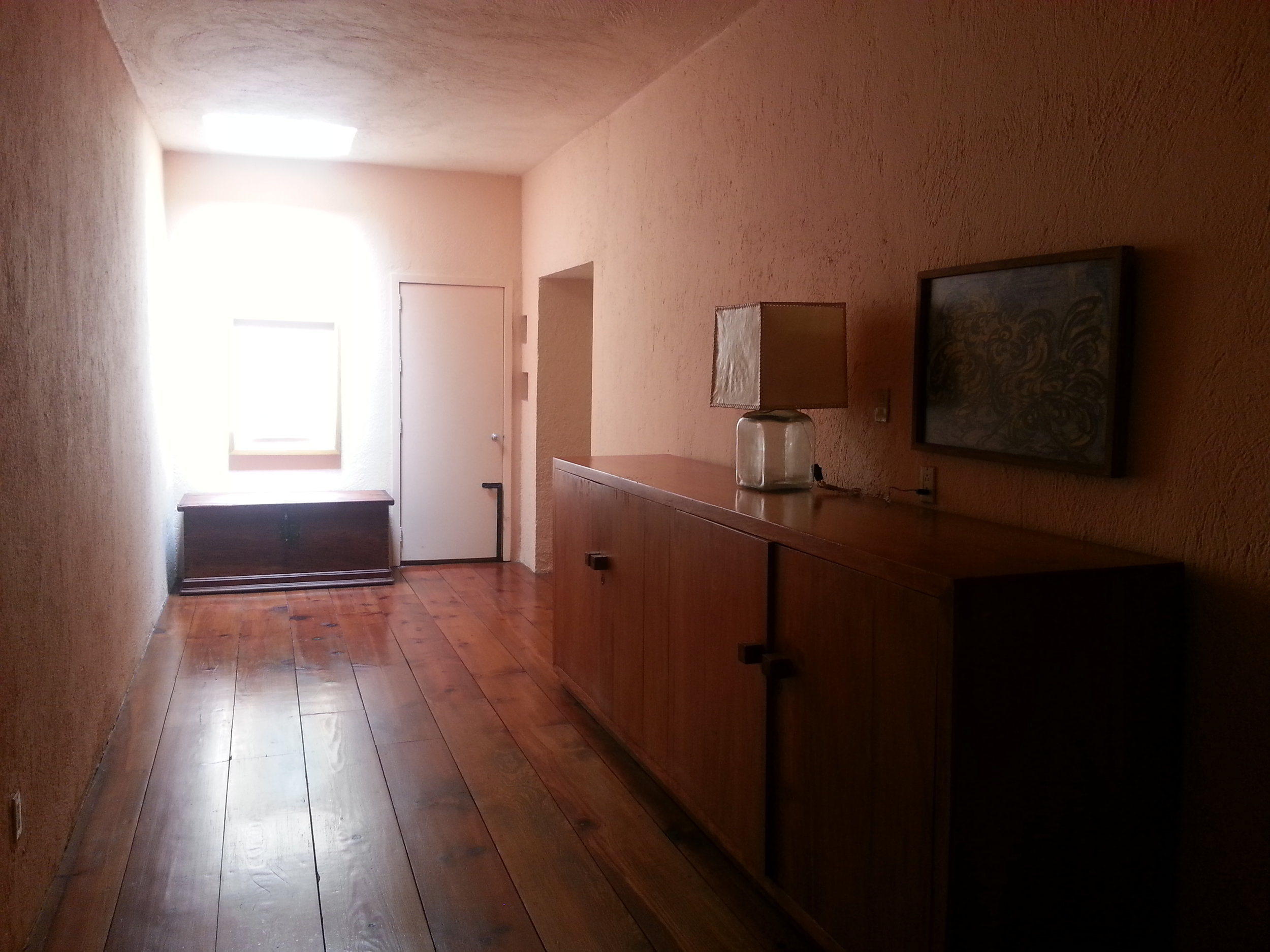 La obra es previsiblemente fascinante, aunque efectivamente no puede ocultar –en algunos espacios íntimos como los dormitorios y los baños- cansancio y cierta necesidad de mantenimiento. Como cualquier arquitecto formado en los ochentas conozco razonablemente la obra de Luis Barragán, y por lo mismo noté que algunos colores habían cambiado: el pórtico de acceso rosa mexicano estaba café claro – hay fotos en las que incluso aparece amarillo con la casa en blanco-, y el color café que conocemos por las fotos del famoso libro de Yutaka Saito -de Noriega Editores- lo encontré mucho más naranja; algunas proporciones de alguna fachada o de la alberca se modificaron casi imperceptiblemente también…supongo algo natural en una casa (habitada) de más de 60 años de edad. Acaso el mayor descubrimiento para el que escribe fue el jardín (“…el más eficaz refugio contra la agresividad del mundo contemporáneo”) que, en dos niveles interconectados por un sendero de piedra volcánica con profundidades, segundos planos, “misterio y embrujo”, incorporó gran cantidad de escultóricos colorines agregando alegría al conjunto (…“¡Cómo olvidarla! Pienso que una obra alcanza la perfección cuando no excluye la emoción de la alegría, alegría silenciosa y serena disfrutada en soledad”).